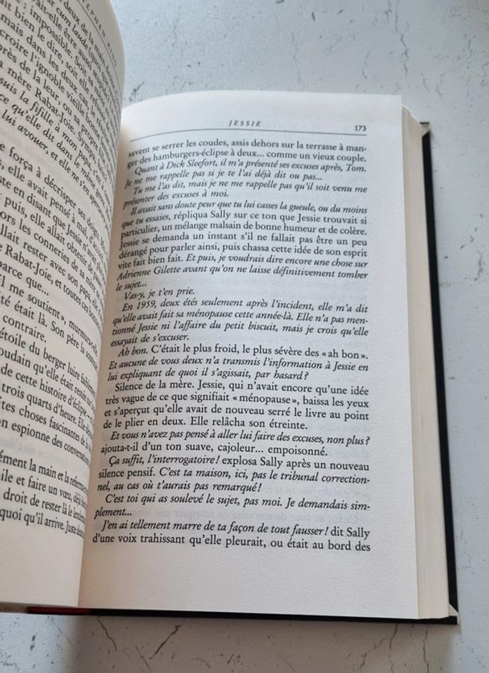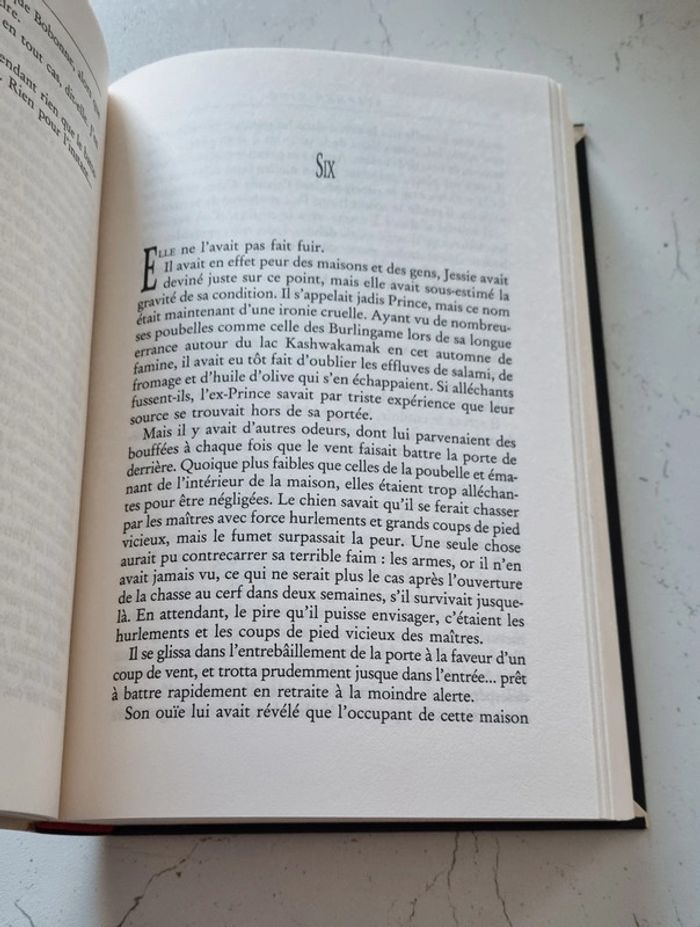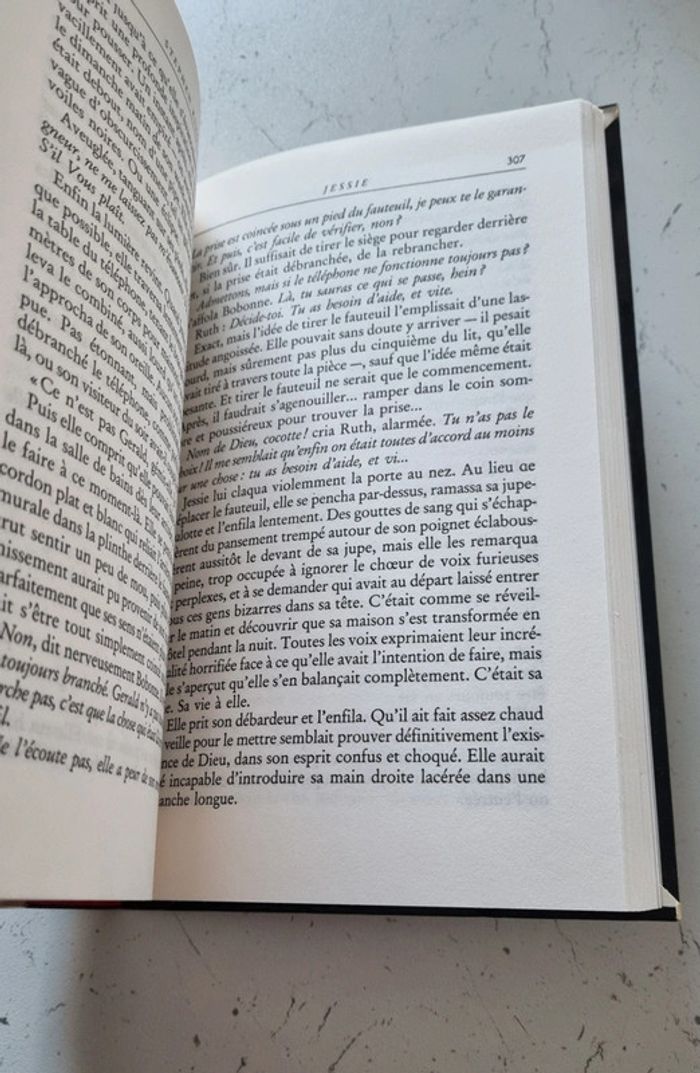 Roman de Stepven King Année 1992 Il ne fallait pas jouer à ce petit jeu, Jessie. Vous voilà enchaînée sur votre lit, le cadavre de Gerald à vos pieds, condamnée à vous enfoncer dans la nuit, la terreur et la folie. Les femmes seules dans le noir sont comme des portes ouvertes... si elles appellent à l'aide, qui sait quelles créatures horribles leur répondront ? Aucun des précédents romans de King ne prépare au huis-clos terrifiant de Jessie, à cette lente exploration de nos phobies et de nos cauchemars les plus sombres. L'histoire de Jessie, sa dernière victime, montre à quel point il ne faut avoir peur que de soi-même. 389 pages Dimensions : 16X24,5 cm Livre comme neuf
