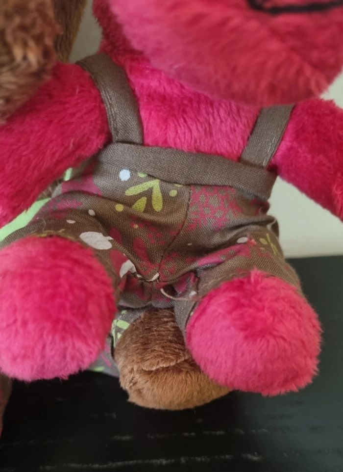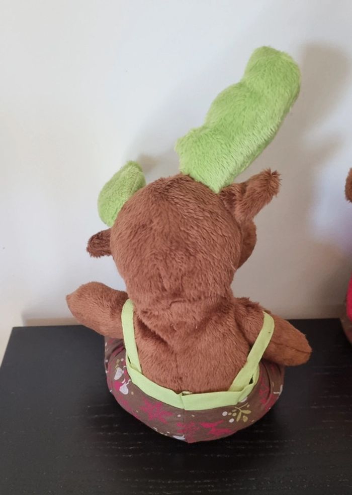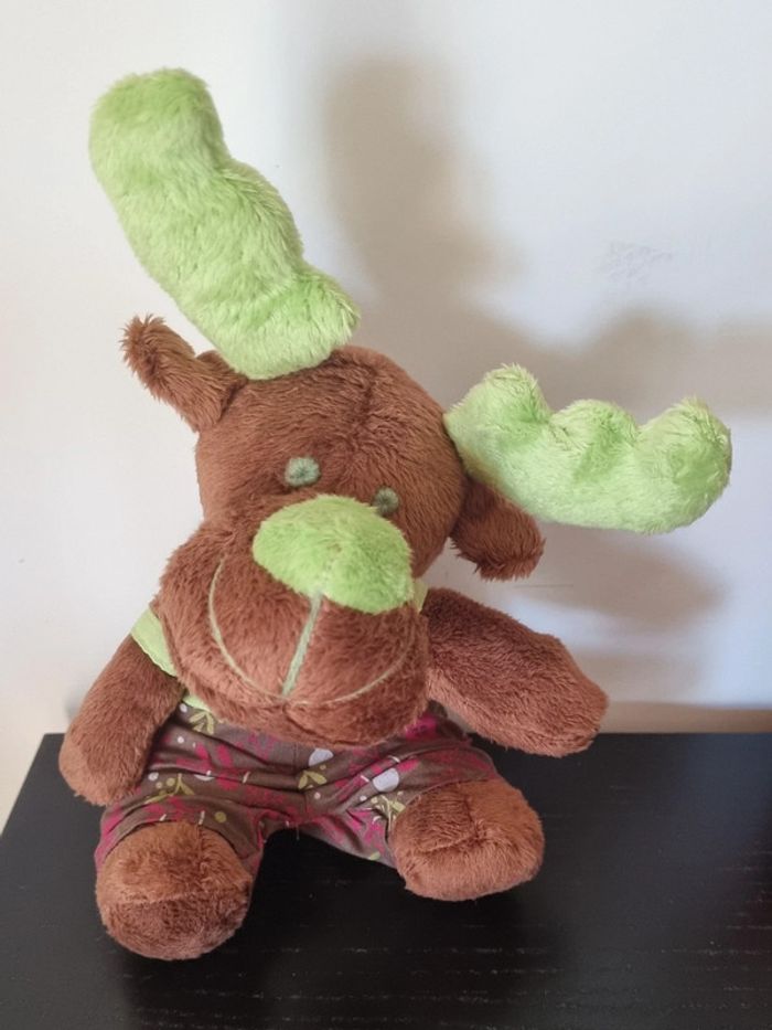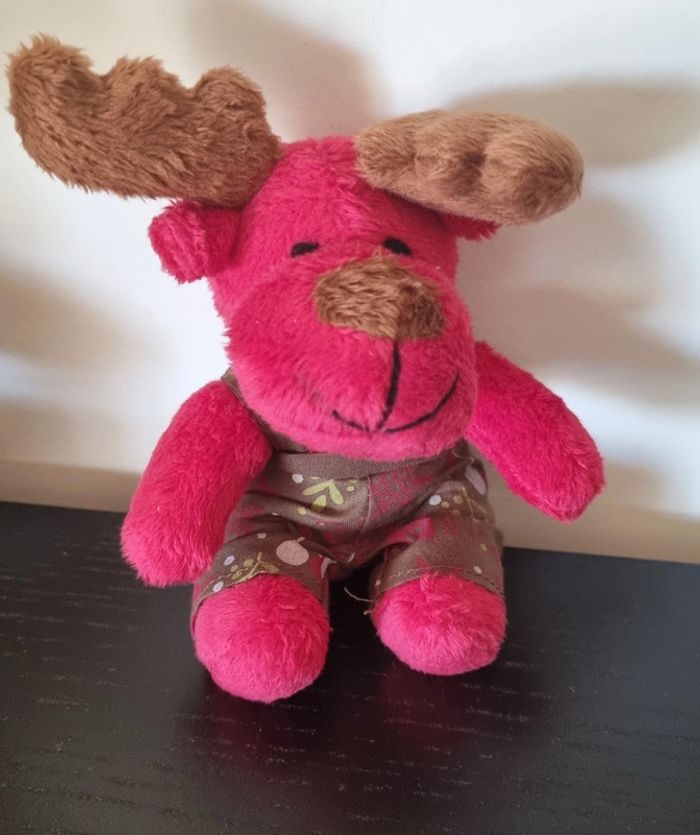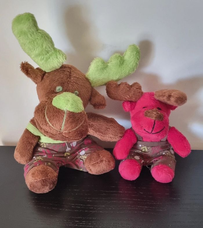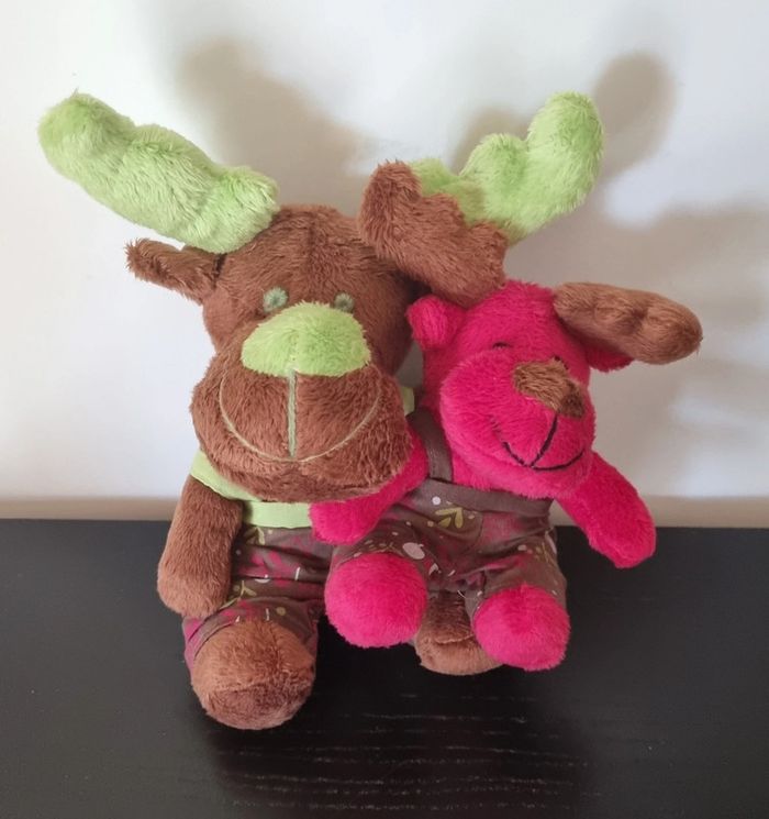 Lot de 2 Peluches rennes vert anis et rose fushia Dimensions : cm le grand et 15 cm le petit Neufs