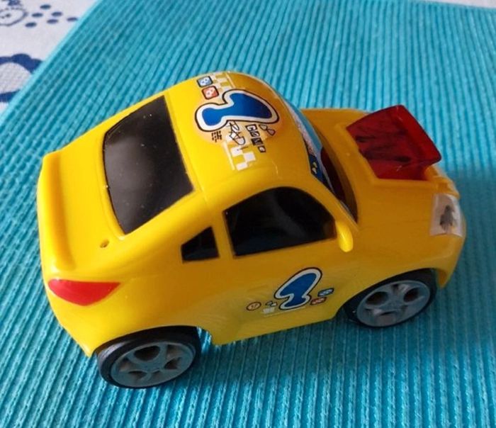 Petite voiture "petit bolide" jaune n°1 Fonctionne avec 2 piles LR06 mais ne marche plus