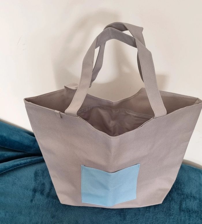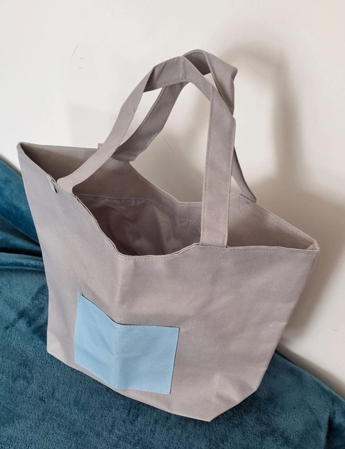 Sac cabas gris avec poche avant bleue - photo numéro 4