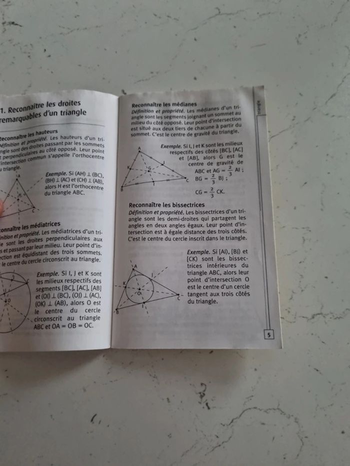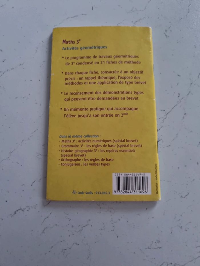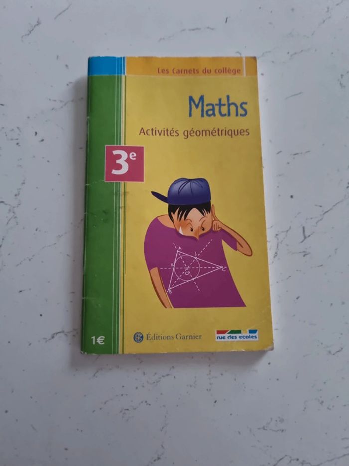 Maths, activités géométriques 3e Livre de 48 pages Bon état Les pages ont pris un peu l'humidité sur la partie haute du livre Programme de travaux géométriques de 3e condensé en 21 fiches Un mémento pratique qui accompagne l'élève jusqu'à son entrée en 2nde.