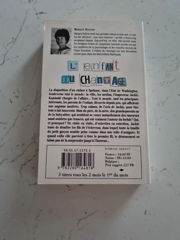 L'enfant du chantage Livre de poche neuf 474 pages La disparition d'un enfant à Spokane, dans l'Etat de Washington, bouleverse tout le monde : la ville, les médias, l'inspecteur Jackie Kaminski chargée de l'affaire… Tout le monde, sauf les principaux intéressés, les parents de l'enfant, divorcés depuis peu, qui affichent une angoisse modérée. Trop calmes, de l'avis de Jackie, pour être tout à fait innocents. Mais du père, de la mère, des grands-parents ou de la baby-sitter, qui semblent se vouer mutuellement des rancoeurs aussi sombres que tenaces, qui est vraiment l'auteur du forfait ? Qui, et pourquoi ? De visite en visite, d'entretien en entretien, Jackie tente de démêler les fils de l'écheveau, dans lequel toute la famille du petit garçon semble prise comme dans une toile d'araignée. Et quand enfin elle parvient à tirer le premier fil, le dénouement ne laisse pas de la surprendre jusqu'à l'horreur...