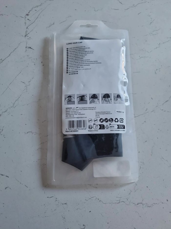 Bonnet de bain noir en silicone grande taille 100% plastique recyclé