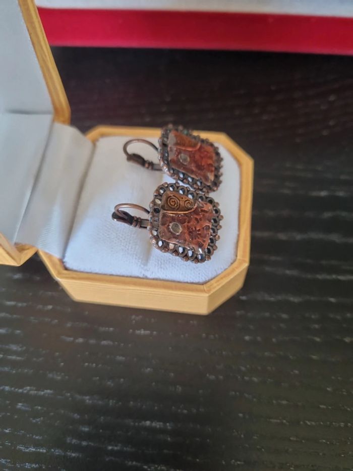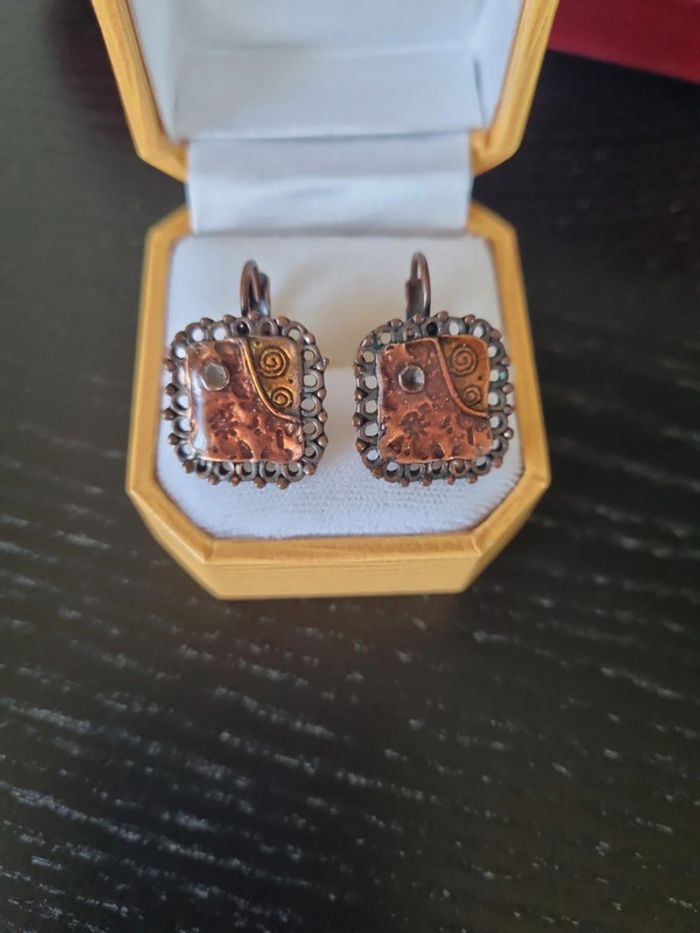 Paire de boucles d'oreilles dormeuses métal vielli Peu portée Vendue sans boîte