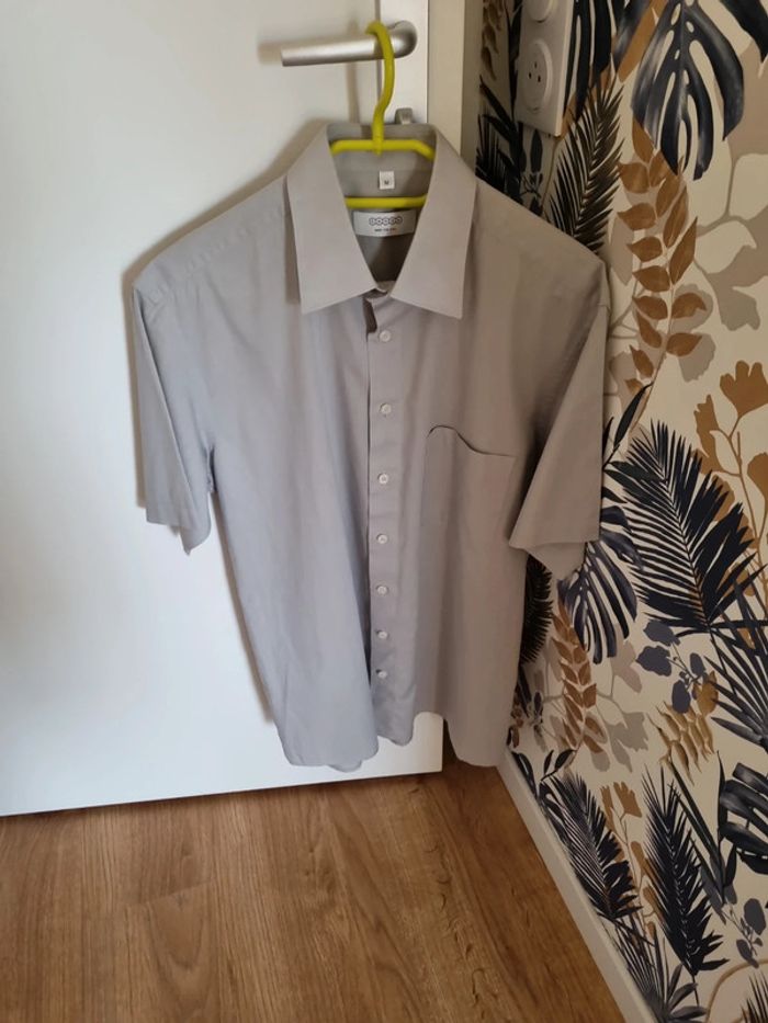 Chemise homme coloris gris manches courtes Col v 1 poche avant gauche Boutonnage avant Taille: M 100%coton