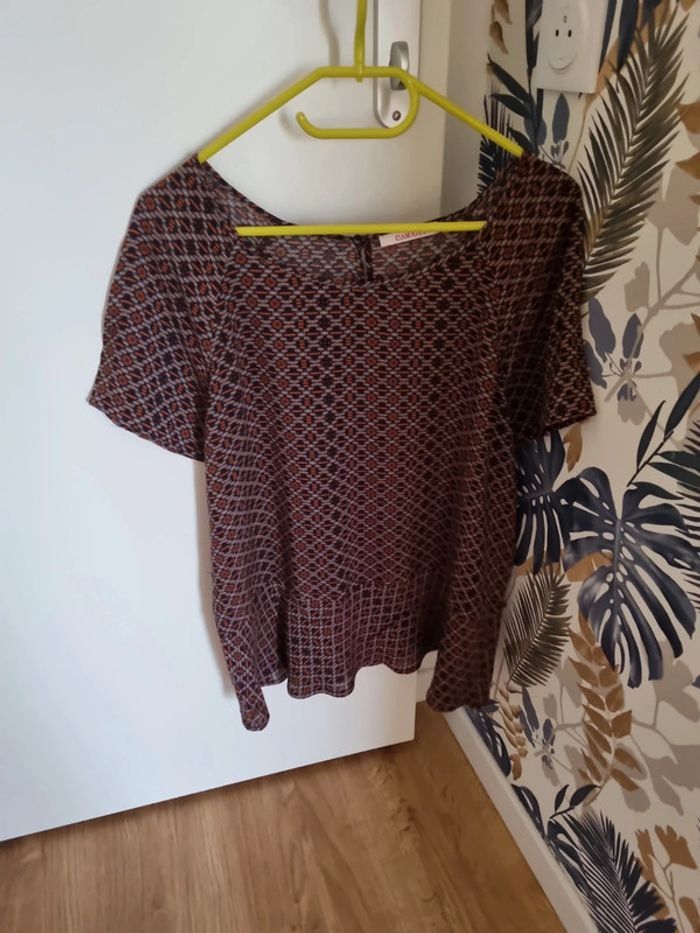 Blouse marron avec motifs manches courtes - photo numéro 1