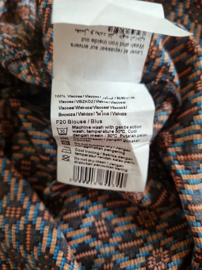Blouse marron avec motifs manches courtes Taille 44 Très bon état 100% viscose