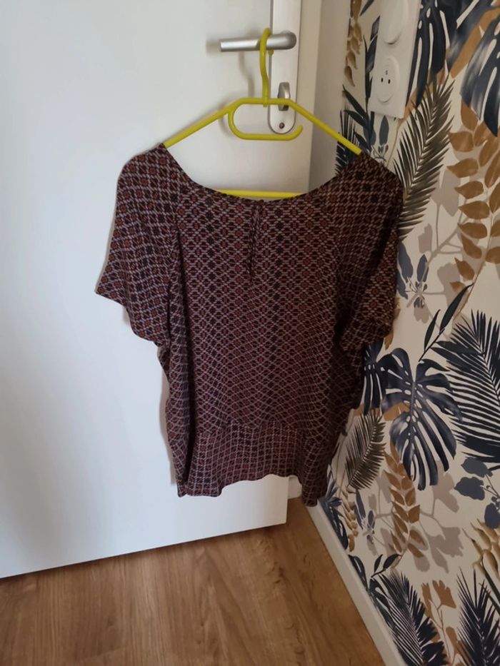 Blouse marron avec motifs manches courtes - photo numéro 2