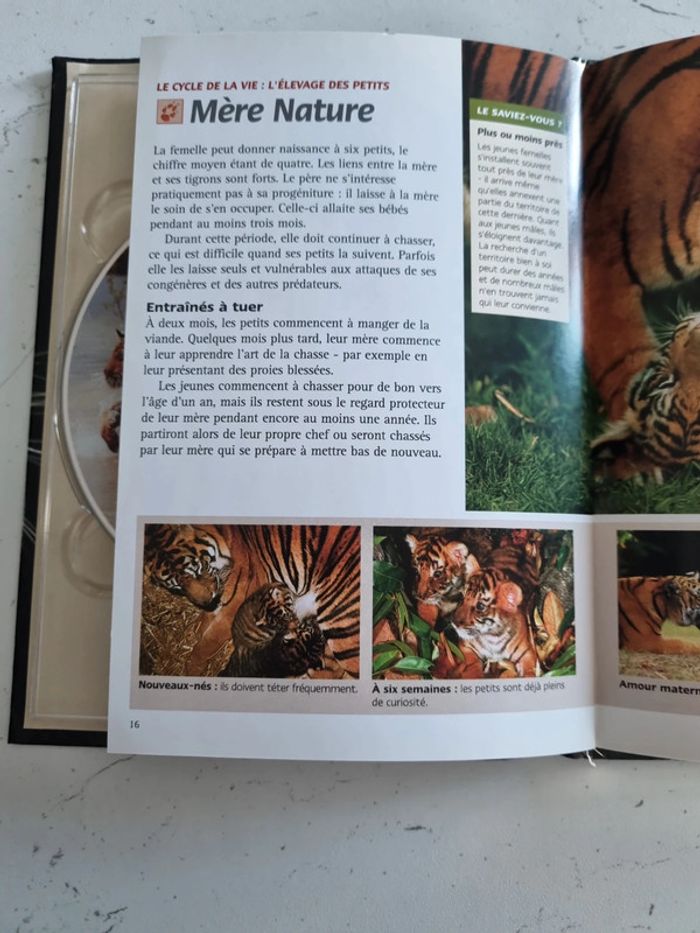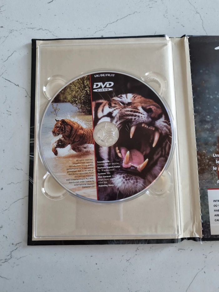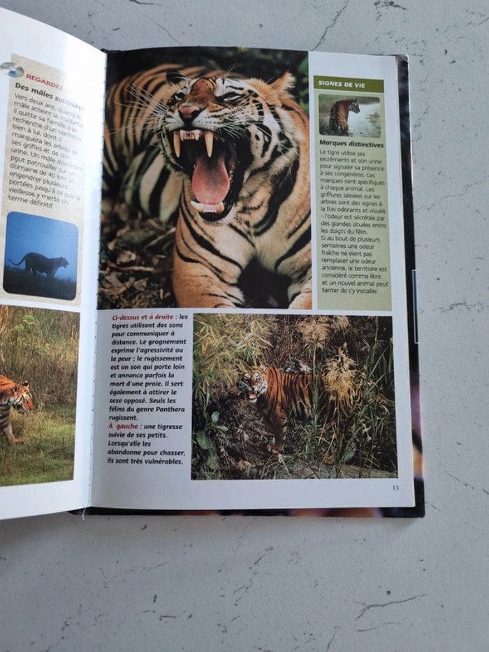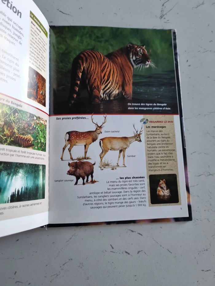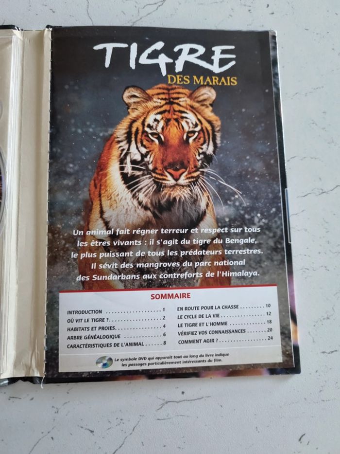 Livre + DVD sur le Tigre des Marais Son environnement, ses caractéristiques, habitats et proies Tout savoir sur le tigre 24 pages Un peu abîmé à l'arrière de la page de couverture