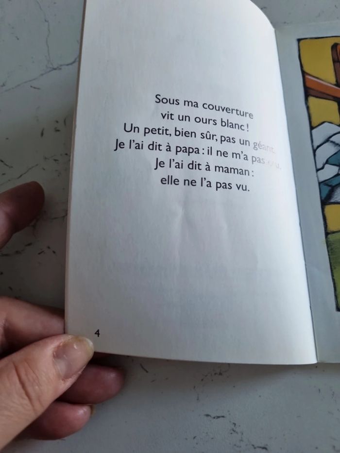 Livre Sous ma couverture L'histoire d'un ours blanc qui vit sous une couverture d'une petite fille Page de couverture un peu froissée 31 pages