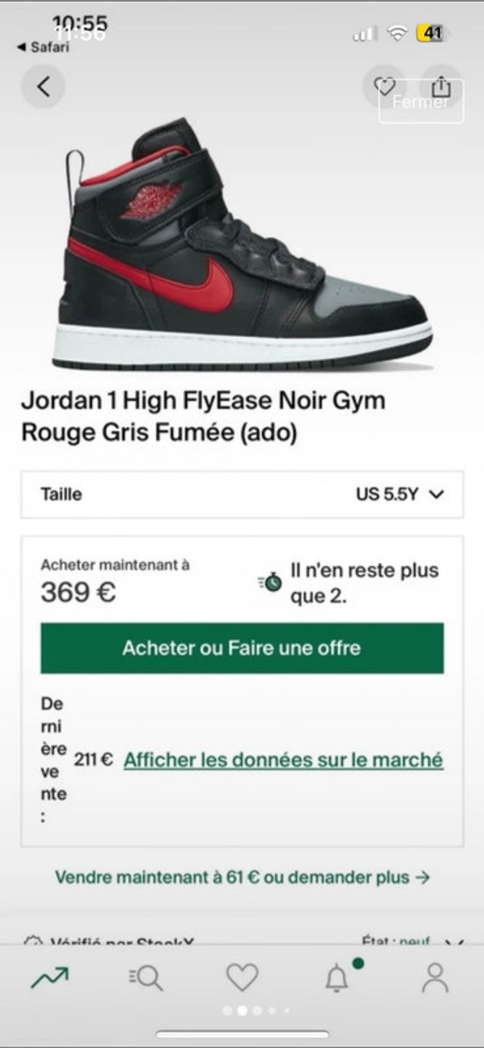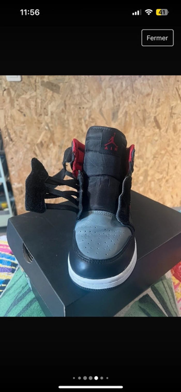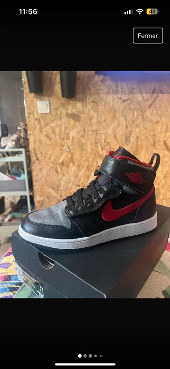 À vendre Baskets Nike air Jordan 1 HI Flyease noir rouge gym taille 38 portées neuves jamais portées Modèle tendance côte 369€sur site de vente de sneakers achetées sur SNKRS