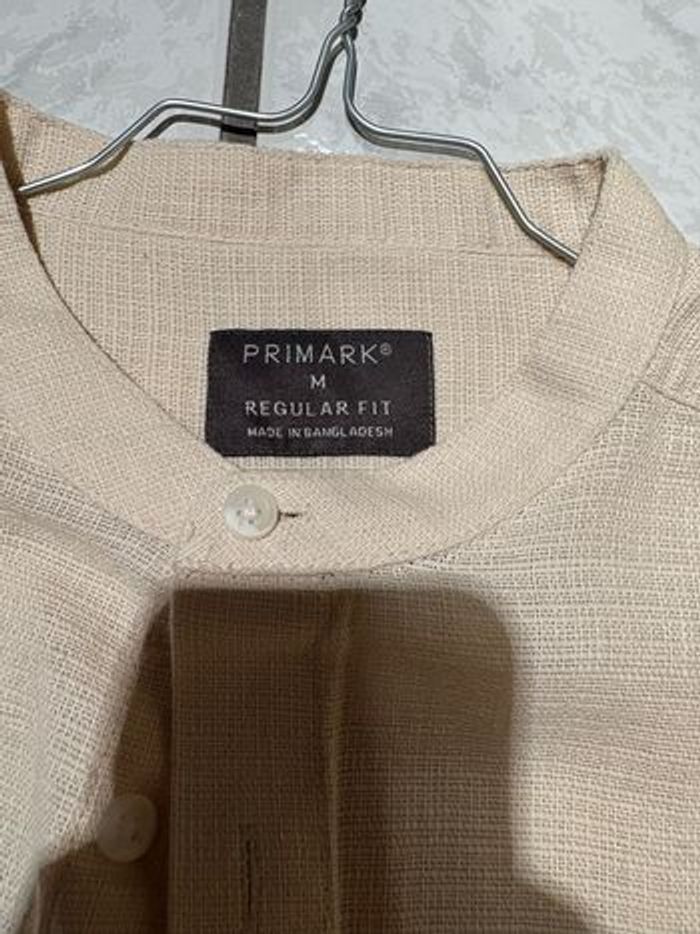 Description : Chemise beige légère, col mao pour un style chic et décontracté. Se porte facilement avec un jean ou un chino. Prix négociable.