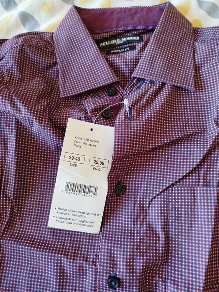 Chemise homme violet Taille 39/40 Neuve avec étiquette Miller et Monroe