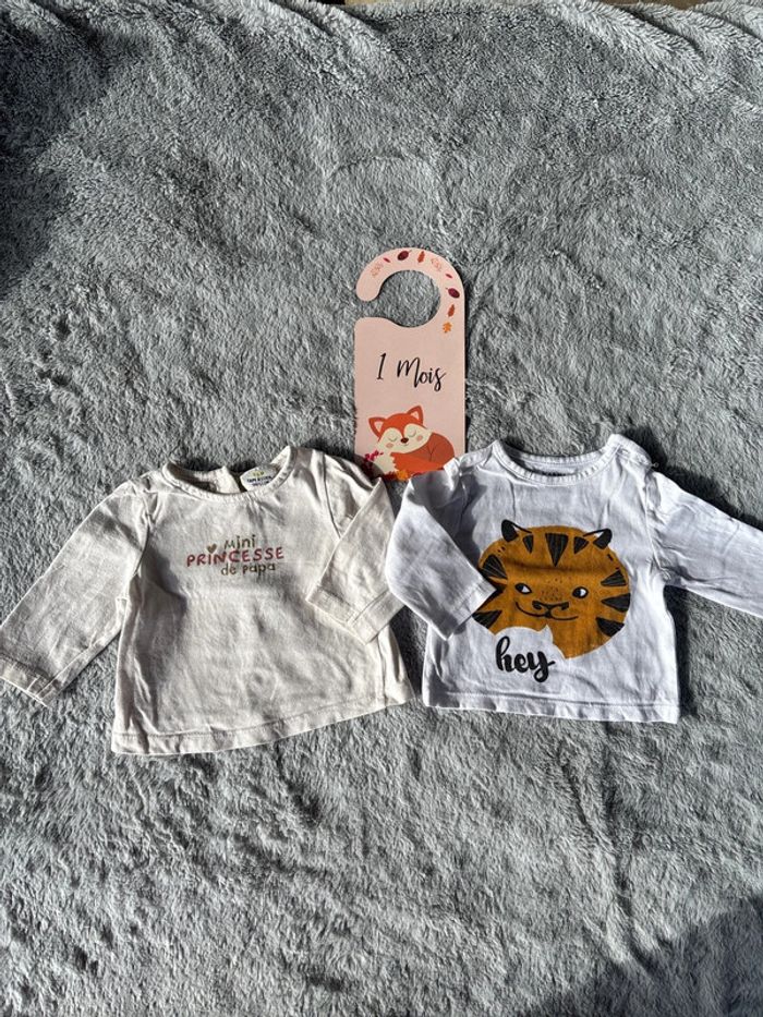 Lot 2 t-shirt manches longues Marque tape a l’œil et Kiabi Très bon état Taille 1 mois Envoi rapide et soigné, maison non fumeur ! ⚠️ pas d'envoi par Vinted GO ! Merci ☺️ ⚠️ Encore du 1 mois avec #AnastasiaG1mois