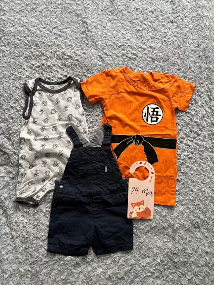 Lot barboteuse / salopette short Taille 24 mois 86cm Marque Kiabi, inconnu (DragonBall Z) et Vertbaudet Très bon état #SashaG24mois