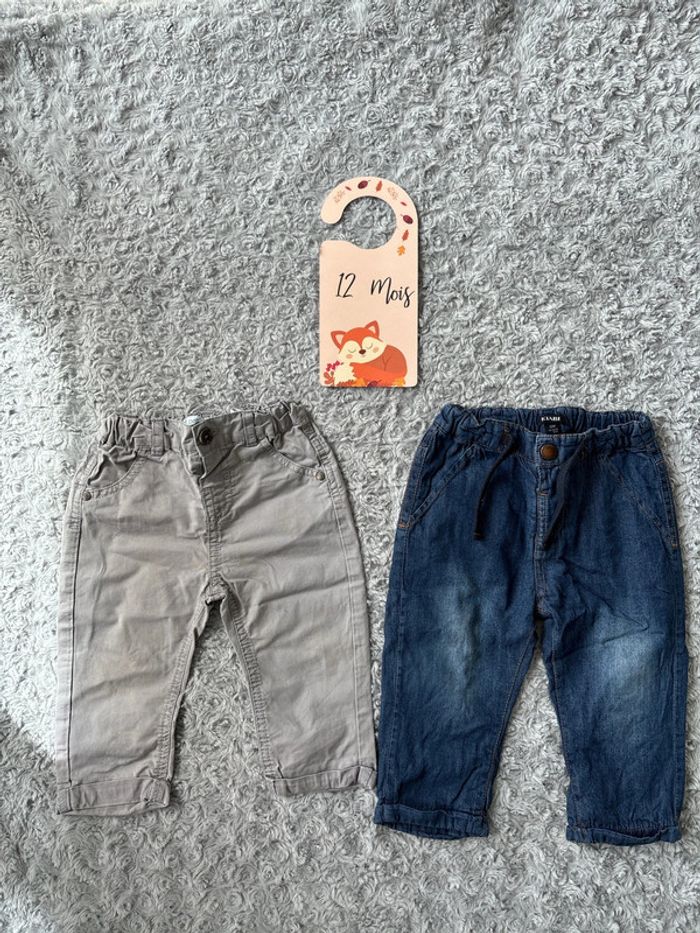Lot 2 pantalons légers Taille 12 mois 74cm Marque gémo et Kiabi Très bon état (le gris présente 1 petite tache bleue jambe gauche) #SashaG12mois