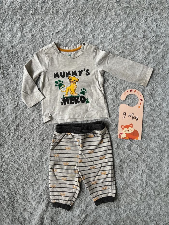Ensemble t-shirt manche longue + pantalon taille 9 mois bon satisfaisant (taches sur le pantalon) Marque Disney x Orchestra #9moisSashaG