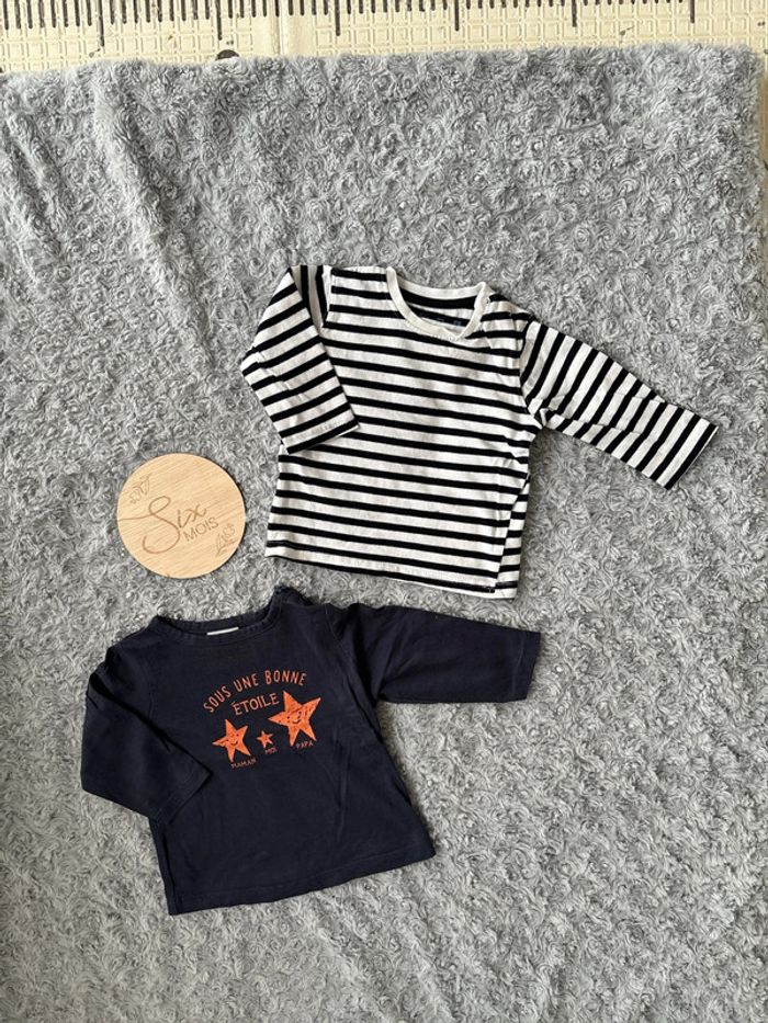 Lot 2 t-shirt manche longue taille 6 mois Très bon état Marque Tape à l’Oeil et Gémo #6moisSashaG