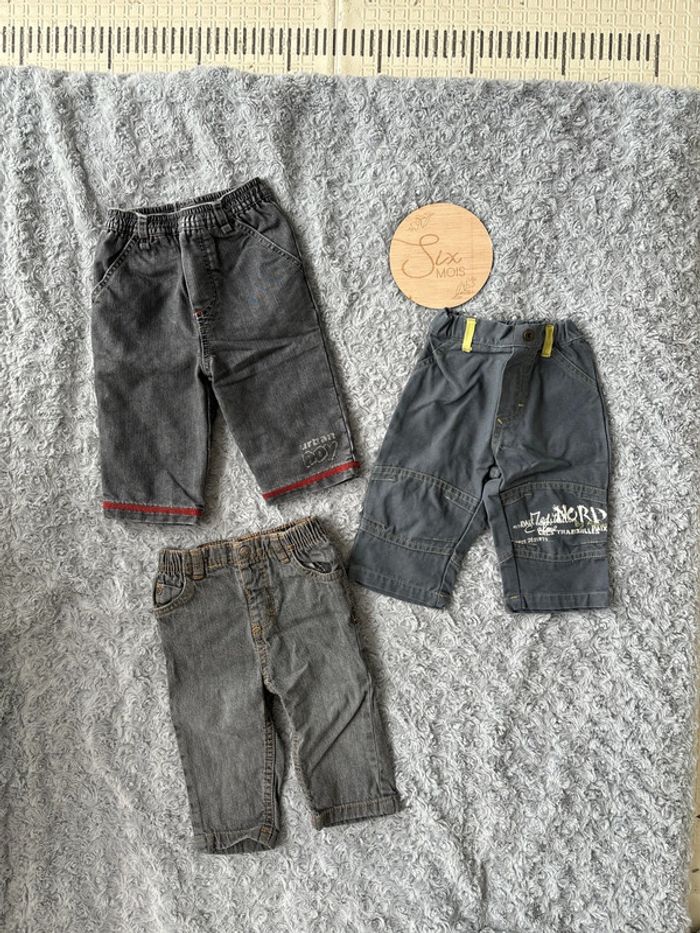 Lot 3 jeans gris taille 6 mois Très bon état Marque Petit pirate Urban, Aubisou et Orchestra #6moisSashaG