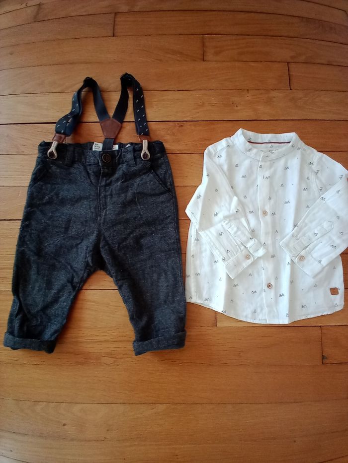 Ensemble Zara chemise et pantalon à bretelles garçon 6/9 mois