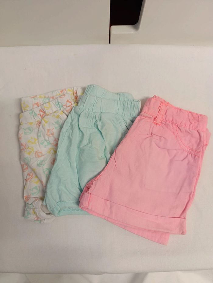 Lot de trois shorts pour fille. Taille 18 mois. Très bon état D'autres articles enfant à vendre dans mon dressing (fille jusqu'à 10 ans, garçon jusqu'à 3 ans). N'hésitez pas à aller les consulter et à faire un lot 😉