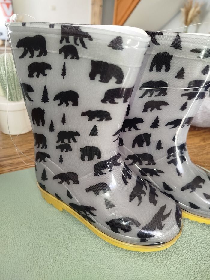 Magnifique botte de pluie ou de jardinage garçon Pointure : 25 Marque : Tissaïa État : NEUF encore étiqueté Matière : caoutchouc et plastique Imperméable : Oui Coloris : Gris et motifs ours 🐻 polaire