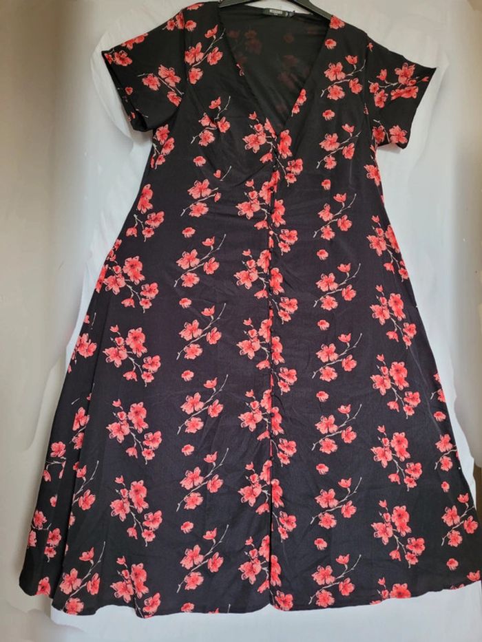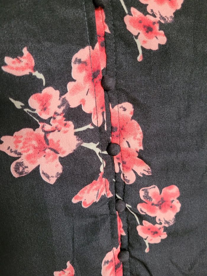 Bonjour Je vends cette jolie robe longue légère et agréable à porter à l imprimé japonisant de fleurs de cerisiers sakura. Bien coupée, toute doublée, ornée de toute une lignée de petits boutons recouverts du même tissu. Ne nécessite pas de repassage ! 😉 Mesures Aisselle à aisselle 60 à 65 Taille 58 à 62 Hanches 75 à 82 Du haut des épaules au bas de la jupe 129