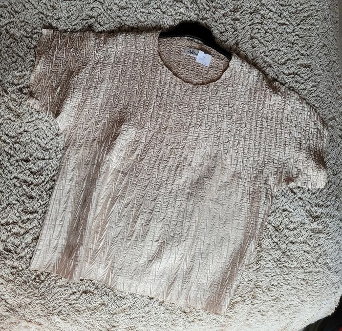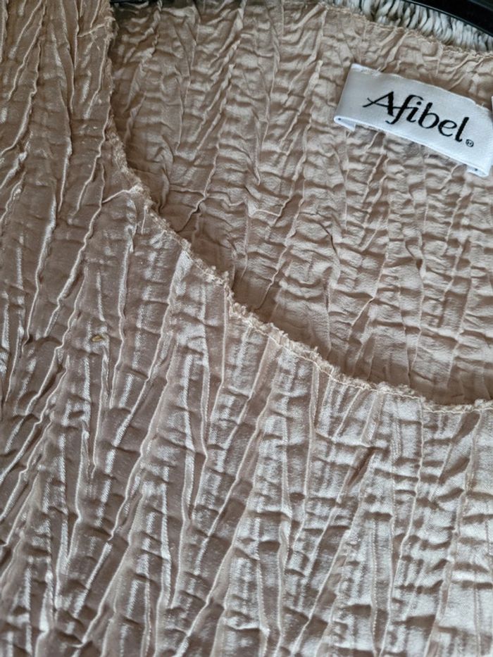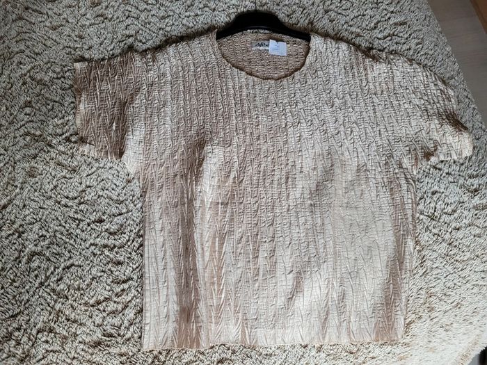 Tee shirt léger froissé Afibel ample, ivoire doré, sêche super rapidement, pas besoin de repassage, au top dans une valise de vacances au soleil ! Se marie avec tout. Parfait état Pas d étiquette de taille : estimé en taille 50 par mes soins.