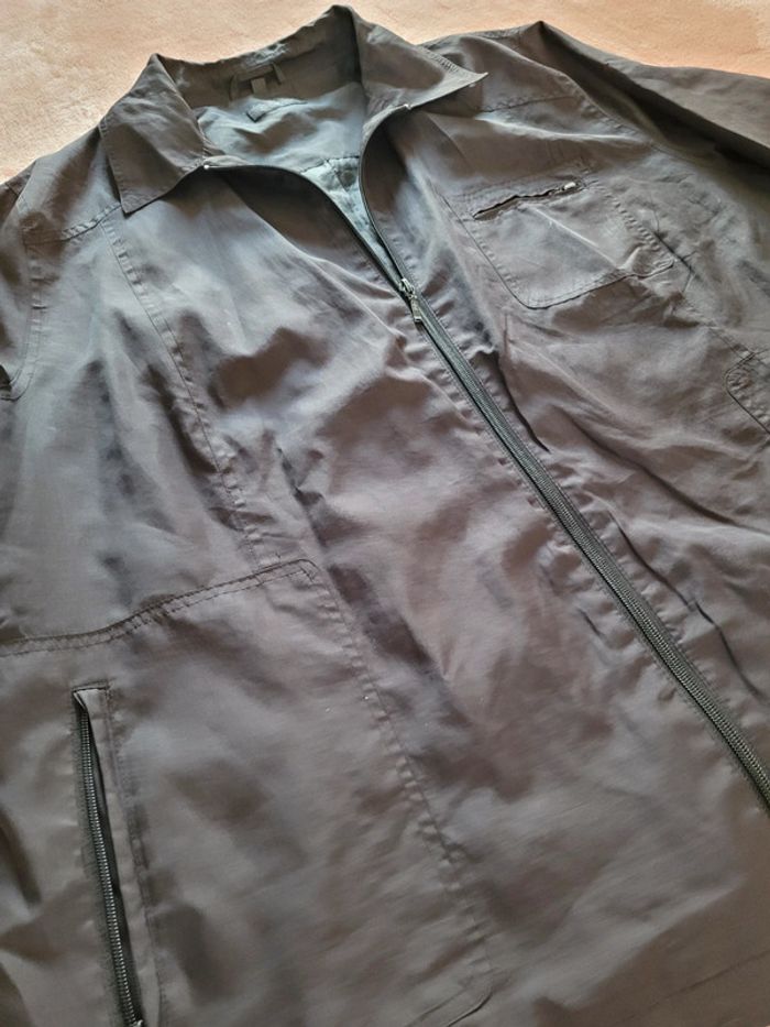 Bonjour Je vends ce blouson coupe vent léger idéal pour les petites bourrasques de bord de mer. Tissu souple et confortable, nombreuses poches, petit col relevable, grand zip de fermeture. Intégralement doublé. #bretagne #normandie Mesure d aisselle à aisselle 73cm Du haut de l encolure (mais sans le col) au bas 76cm.