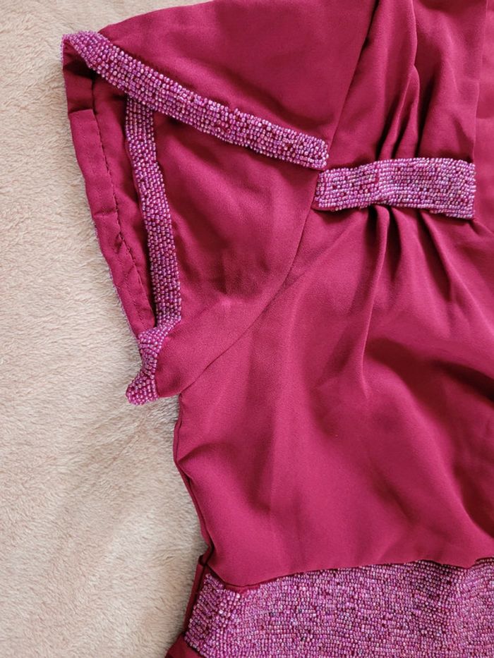 Superbe robe neuve couleur cassis brodée de perles - photo numéro 5