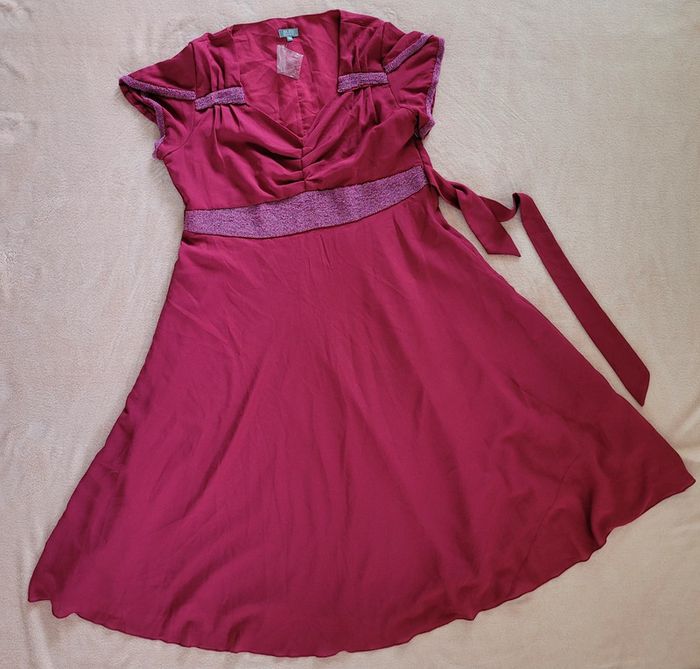 Superbe robe neuve couleur cassis brodée de perles - photo numéro 1