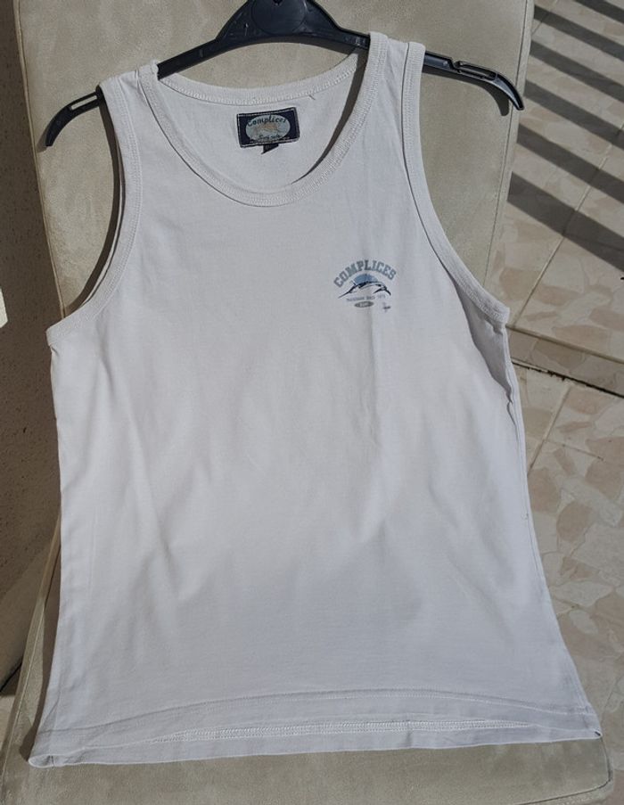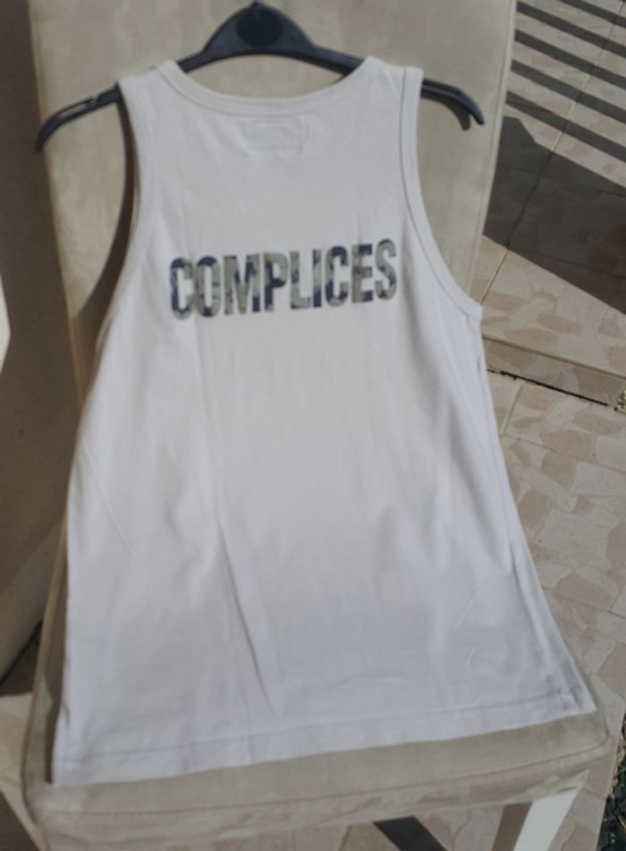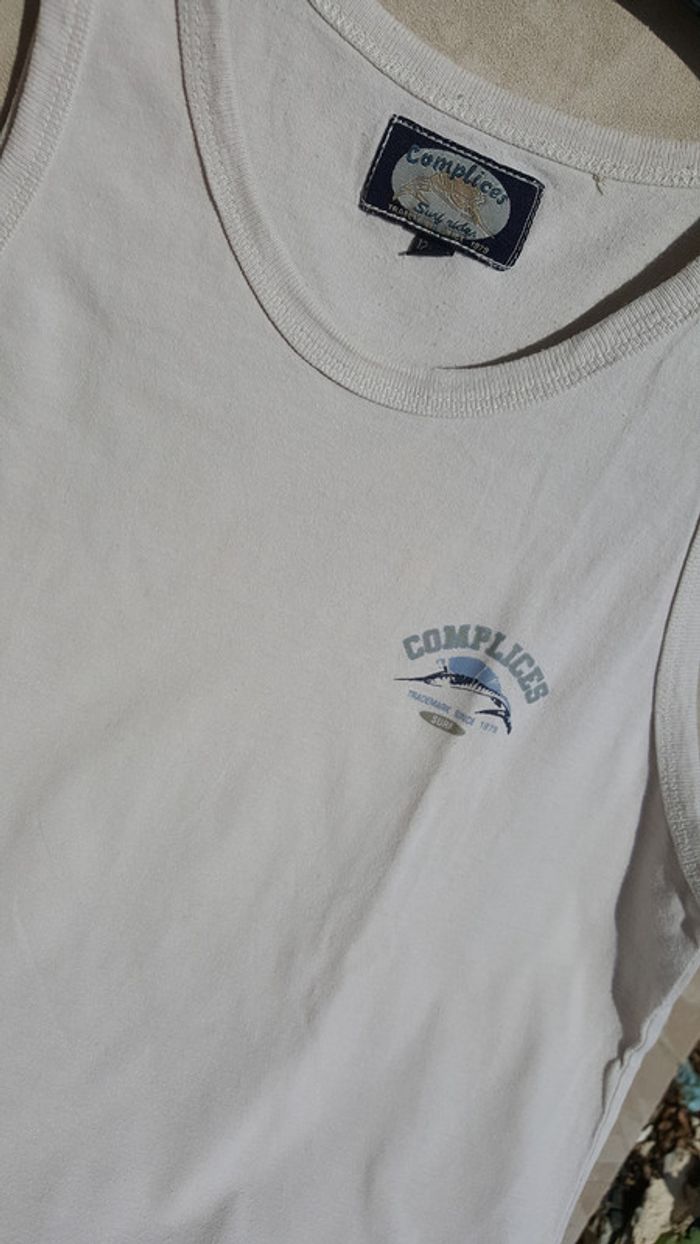 Beau tee-shirt sans manches débardeur couleur Ecru Crème de la marque Complices. Taille 12 ans. Très bon état. Famille soignée et soigneuse, non fumeur et sans animaux.