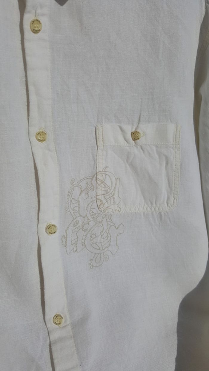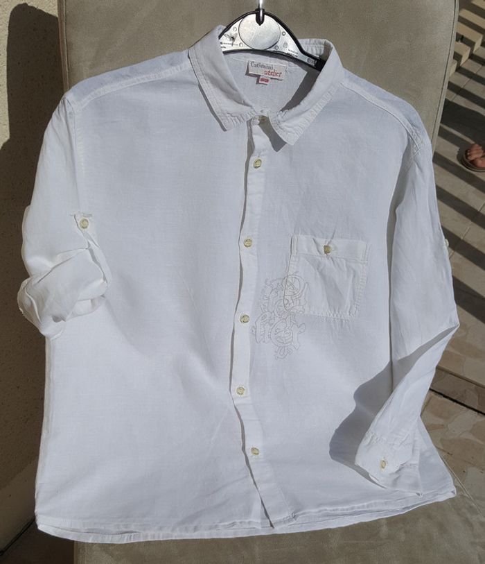 Très belle chemise en lin et en coton, de couleur blanche, de marque Catimini série "Atelier". Manche longues retroussables avec bouton sur la manche. Très léger et très agréable à porter l'été. Belles finitions. Taille 10 ans. Excellent état. Famille soignée et soigneuse, non fumeur et sans animaux.