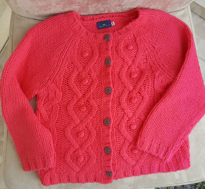 Beau gilet rose grandes mailles avec boutons de la marque Sergent Major. Taille 5 ans. Très bon état. Famille soigneuse et soignée, non fumeur et sans animaux.