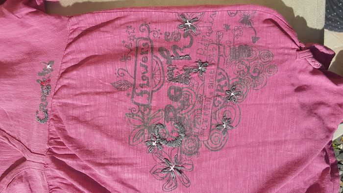 Beau haut tee-shirt tunique rose fuschia de marque Creeks. Motif original. Taille 8 ans. Bon état. Famille soignée et soigneuse, non fumeur et sans animaux. Pensez à regarder les autres articles de mon dressing pour trouver les habits assortis.