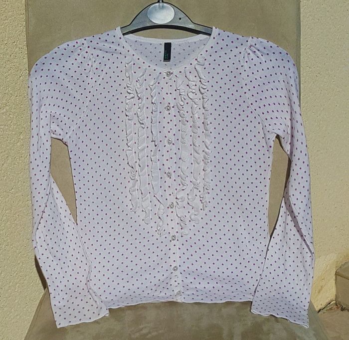 Chemise blanche à pois rose Benetton taille 8 ans - photo numéro 1