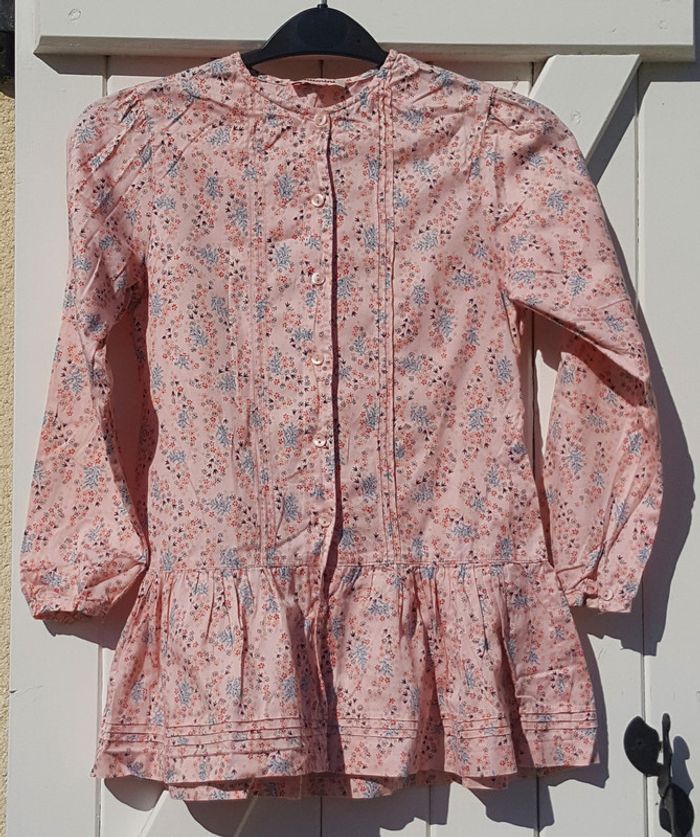 Très beau chemisier chemise rose avec motif fleuri de marque Catimini. Très belles finitions. Taille 8 ans. Très bon état. Famille soignée et soigneuse, non fumeur et sans animaux. Pensez à regarder les autres articles de mon dressing pour trouver les habits assortis.