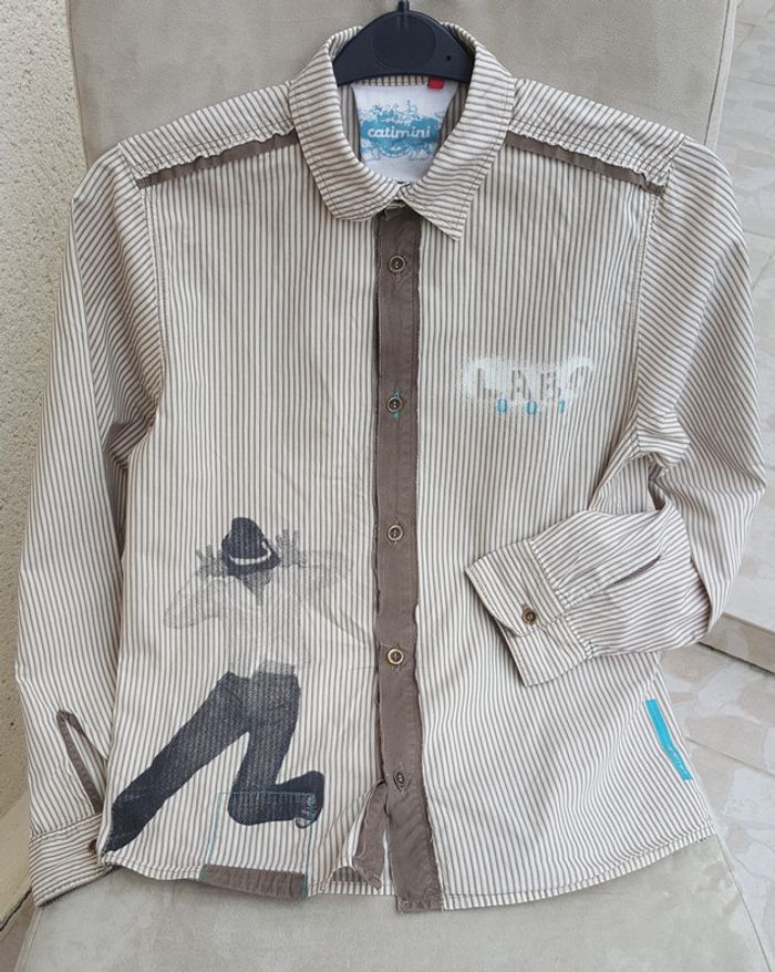 Chemise blanche à rayures marrons Catimini taille 12 ans
