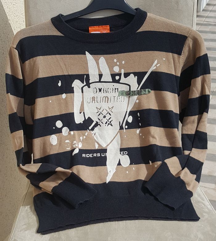 Très beau pull Oxbow noir et marron taille 12 ans. Très bon état. Première main. Famille soignée et soigneuse non fumeur et sans animaux.