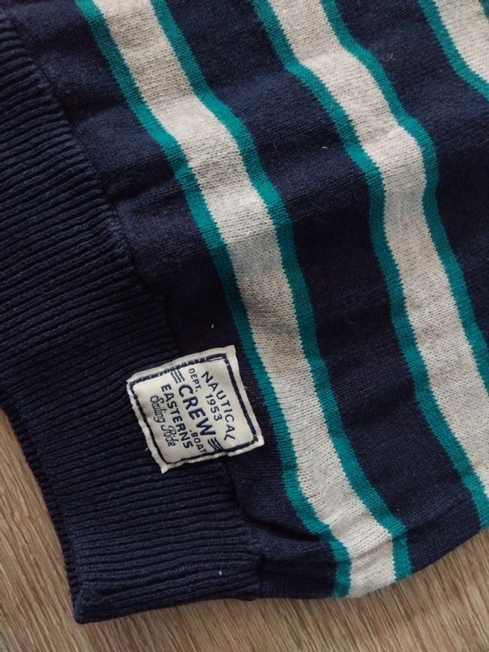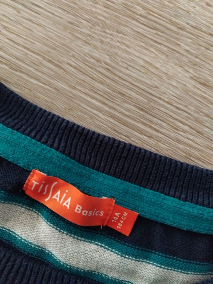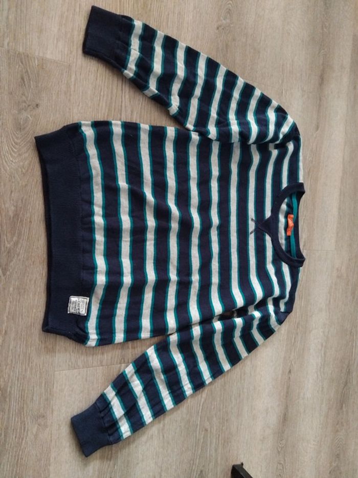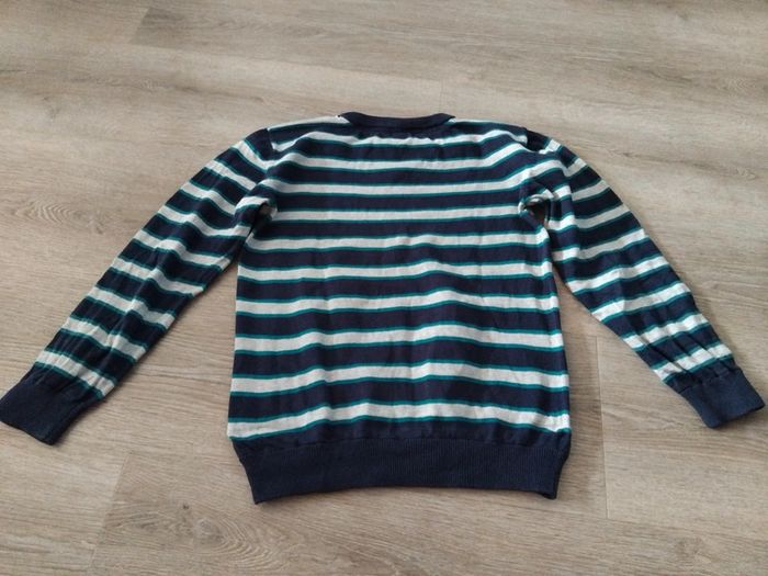 Bonjour, je vends ce pull pour garçon rayé gris vert et marine de la marque Tissaia taille 14ans en très bon état. Lavé maison non fumeur.
