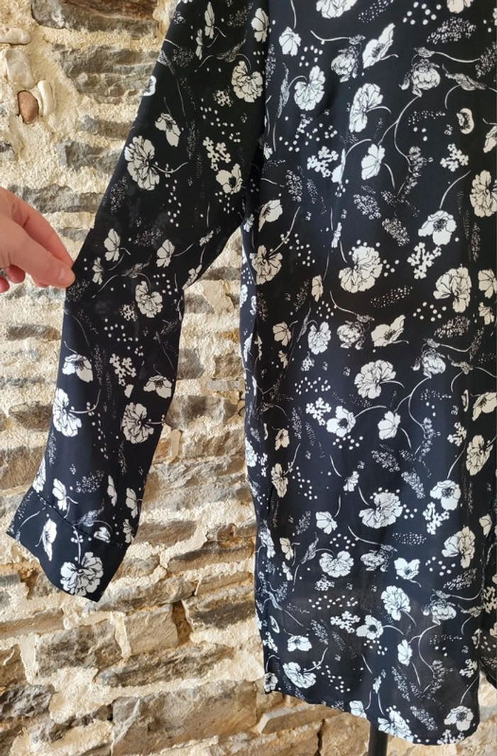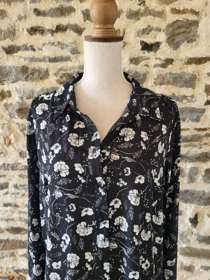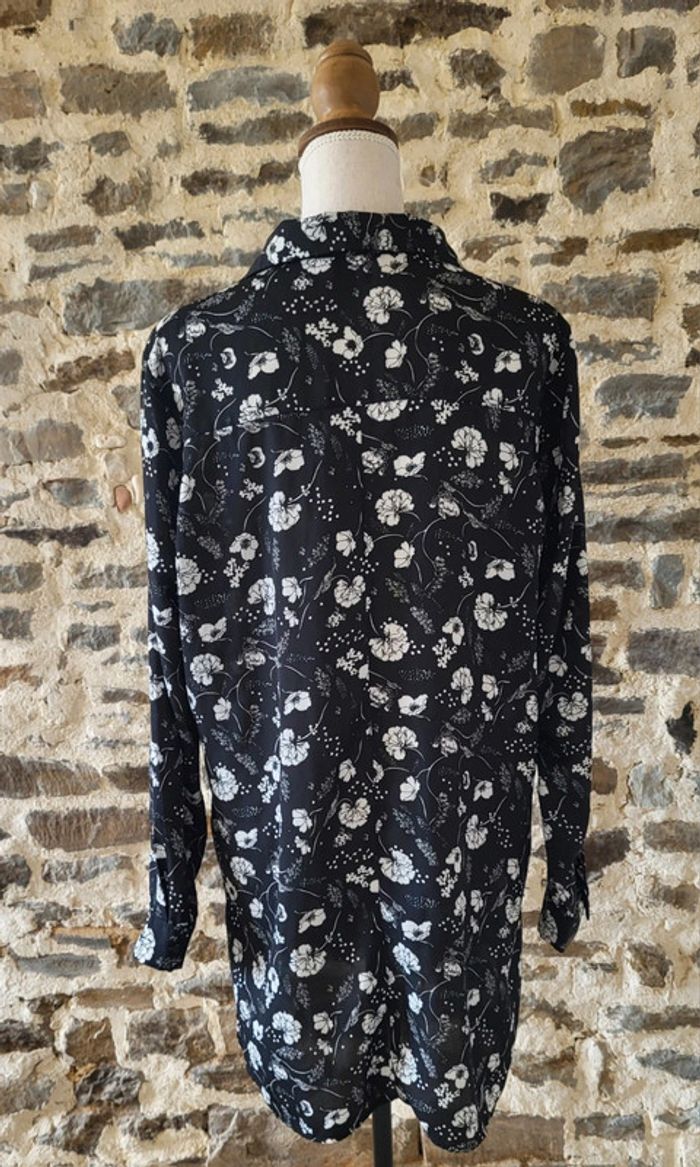 Robe chemise tunique fleurie noir et blanc Gemo Taille 42 - photo numéro 3