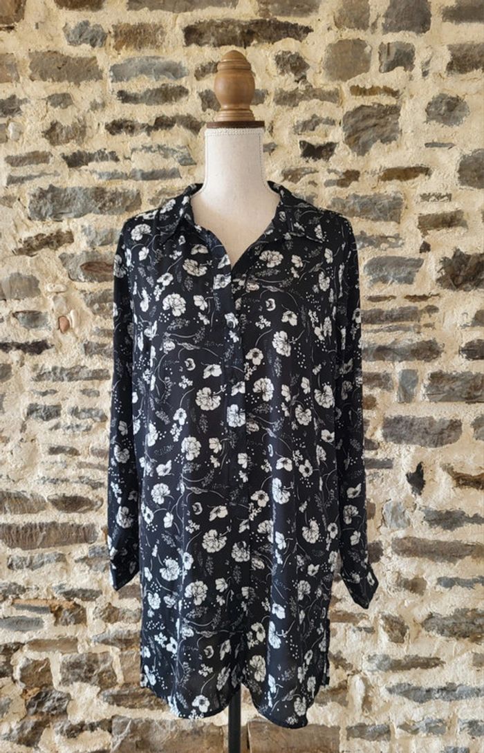 Robe chemise tunique fleurie noir et blanc Gemo Taille 42 - photo numéro 1