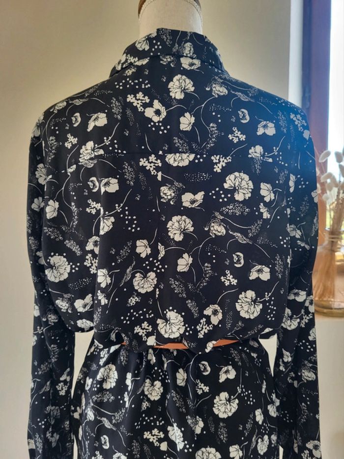 Robe chemise tunique fleurie noir et blanc Gemo Taille 42 - photo numéro 8