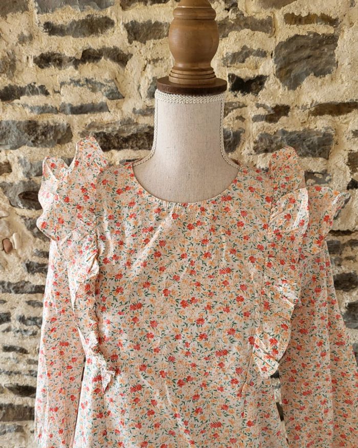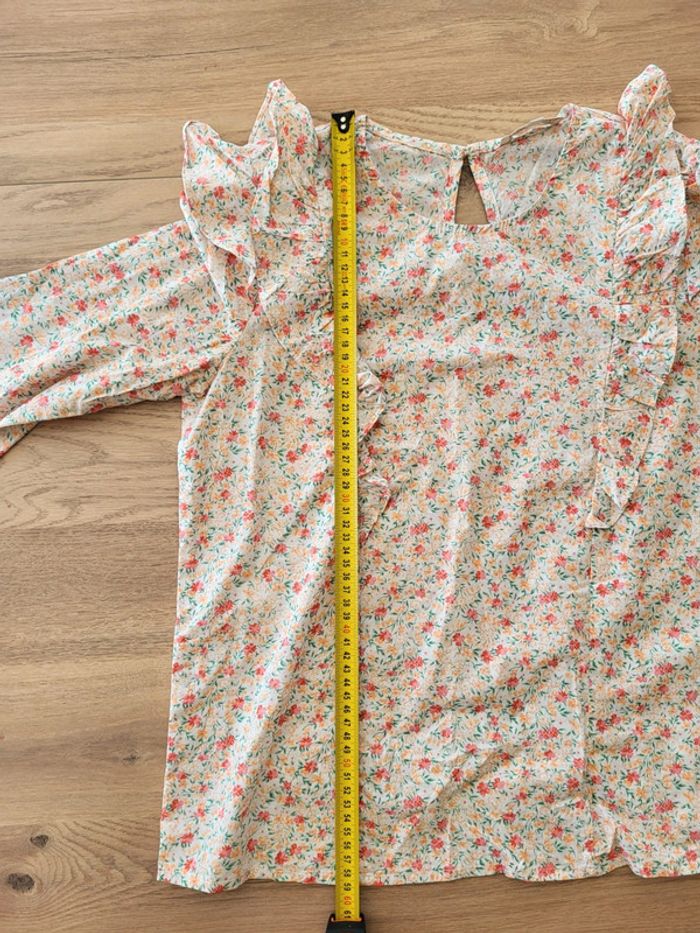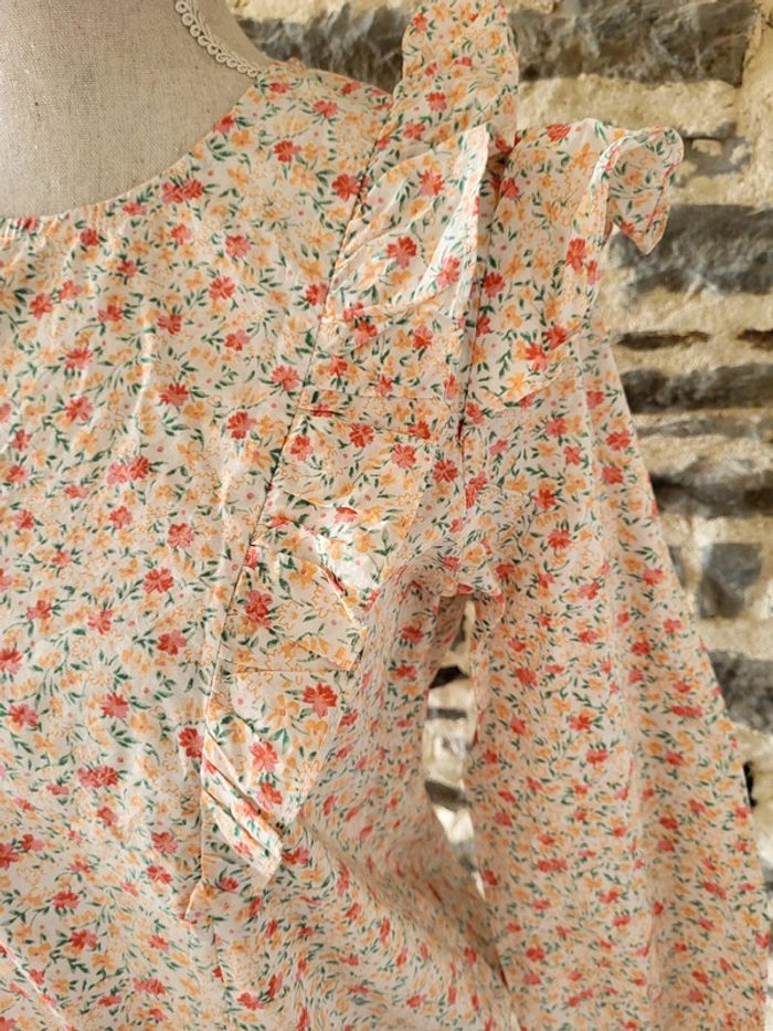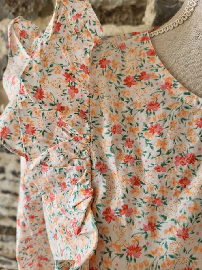 Blouse fleurie rose orangée manches 3/4 volantée Peace n'love Taille S ou 36 - photo numéro 14