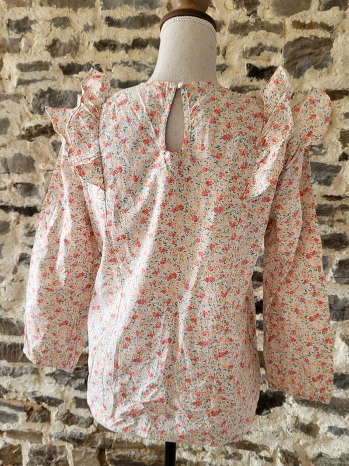 Blouse fleurie rose orangée manches 3/4 volantée Peace n'love Taille S ou 36 - photo numéro 3