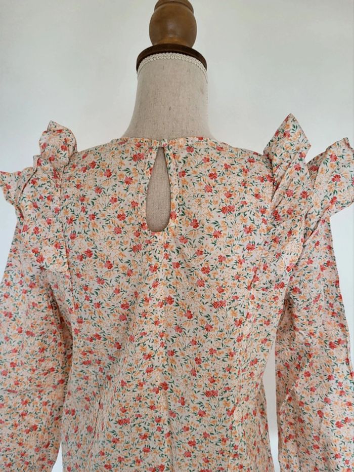 Blouse fleurie rose orangée manches 3/4 volantée Peace n'love Taille S ou 36 - photo numéro 12