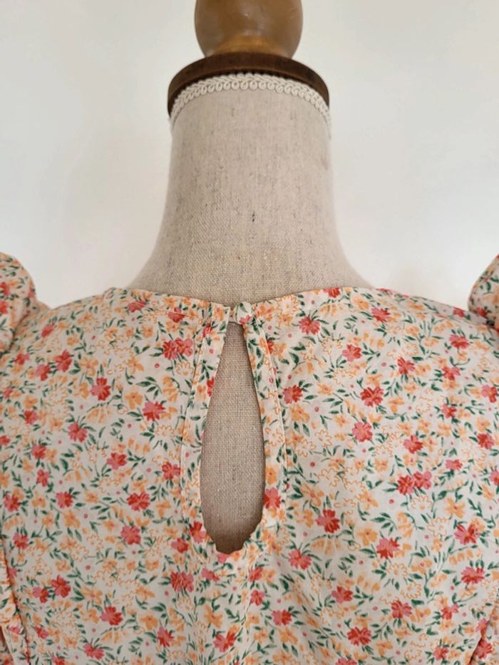 Blouse fleurie rose orangée manches 3/4 volantée Peace n'love Taille S ou 36 - photo numéro 11