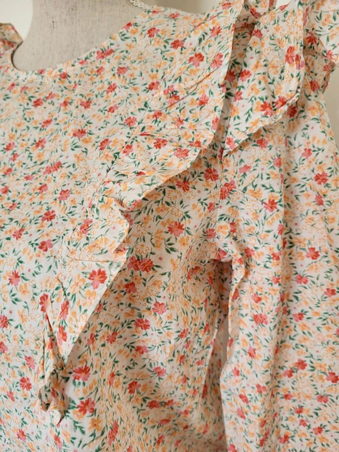 Blouse fleurie rose orangée manches 3/4 volantée Peace n'love Taille S ou 36 - photo numéro 15