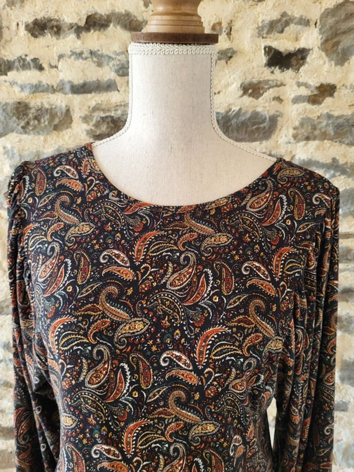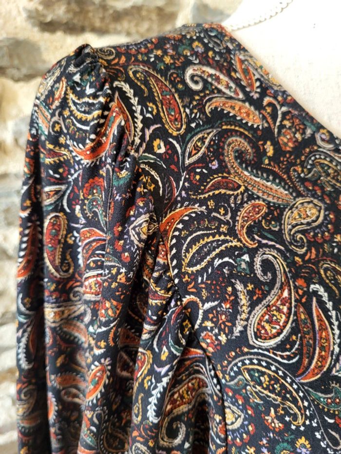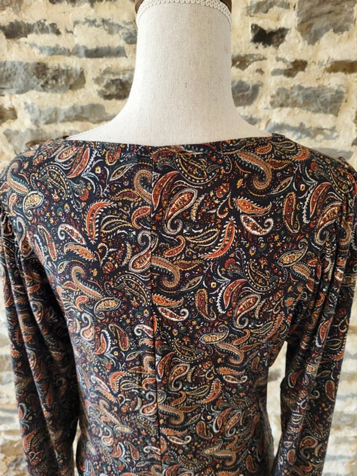 Blouse manches longues imprimé cachemire noir rouille doré Cache Cache Taille XS ou 34 - photo numéro 13