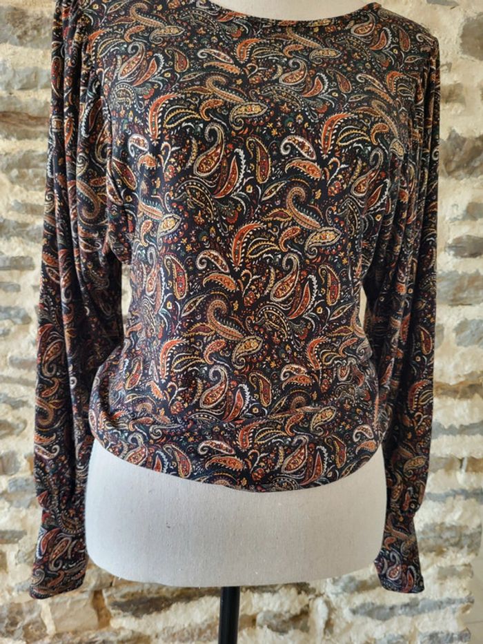 Blouse manches longues imprimé cachemire noir rouille doré Cache Cache Taille XS ou 34 - photo numéro 3
